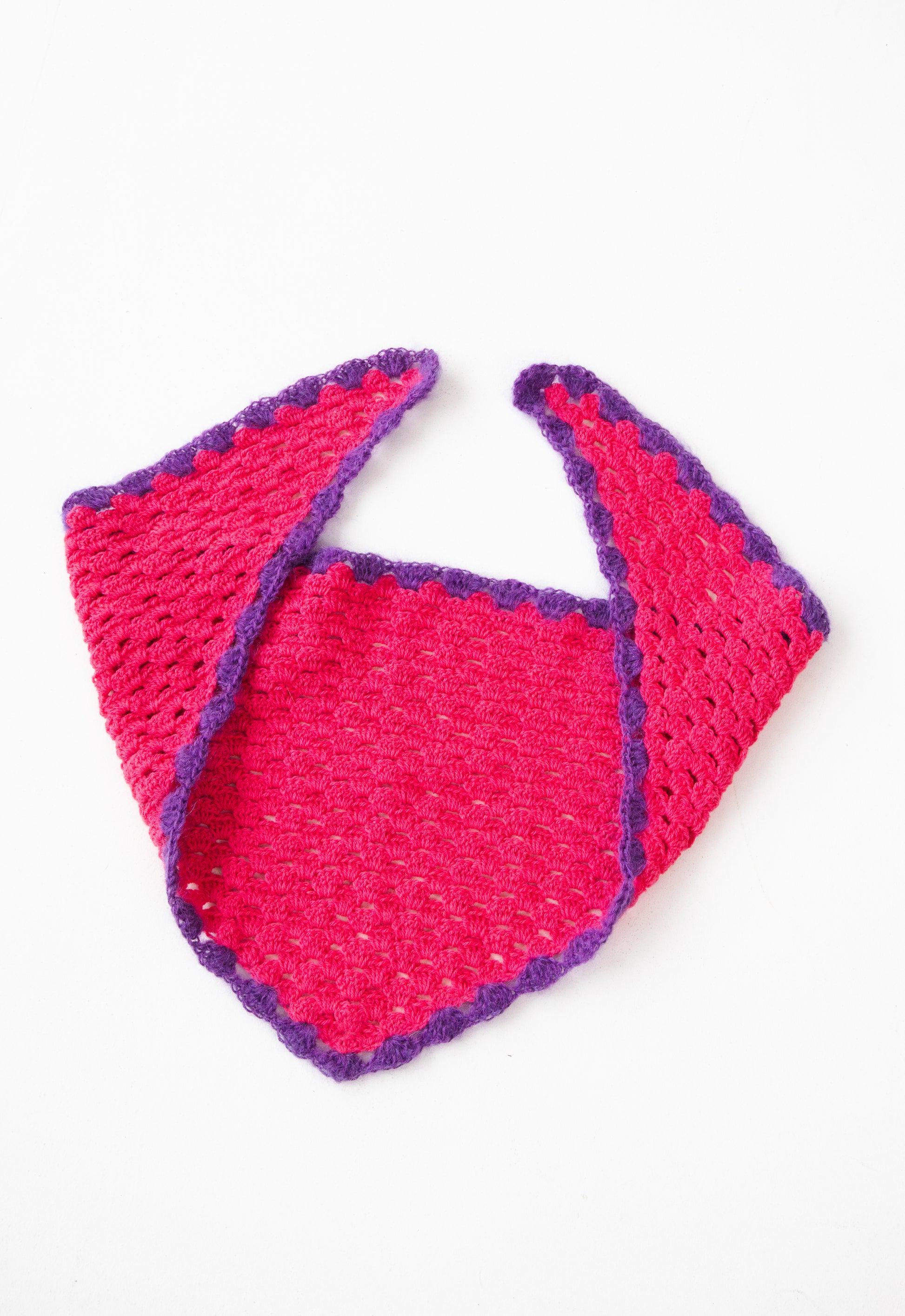 Lenço de crochet em duas cores contrastantes, num formato mais curto.